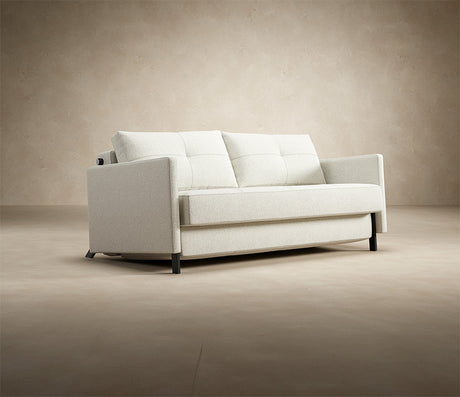 Cubed Queen Size Sofa Bed With Dark Wood Legs