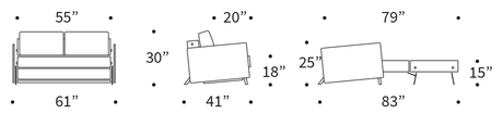 Cubed Full Size Sofa Bed With Dark Wood Legs